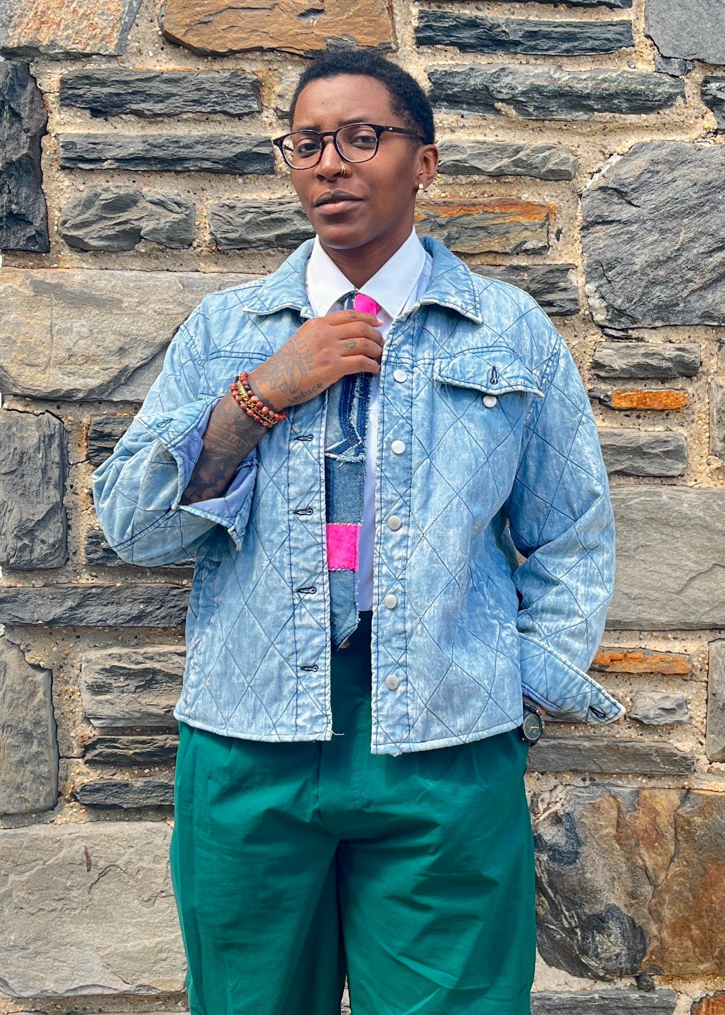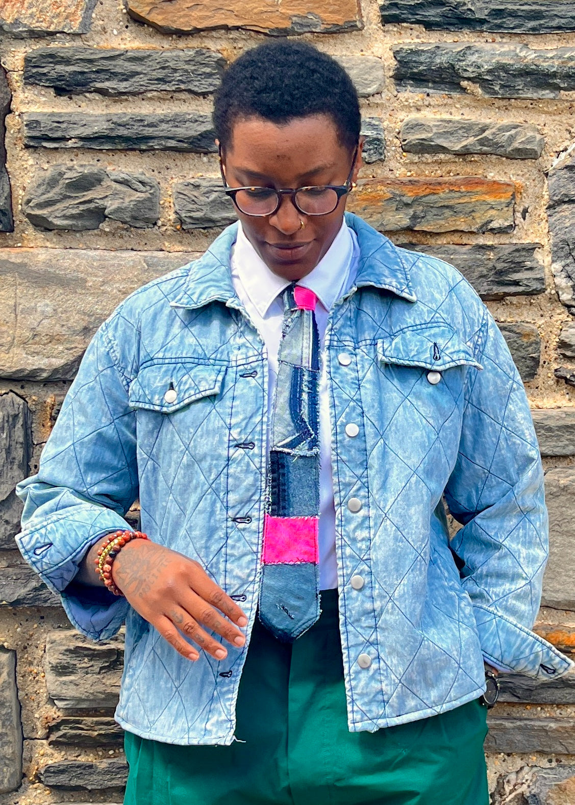 Elevate your look with this handcrafted denim tie — a modern twist on a timeless accessory. Handcrafted from raw ambition and repurposed denim, each 1-of-1 tie is a wearable piece of art. No patterns, no replicas — just soul, stitch by stitch. Designed for the bold, the stylish, and the ones who refuse to blend in. Whether paired with a crisp button-down or layered over streetwear, this tie turns rebellion into refinement.”